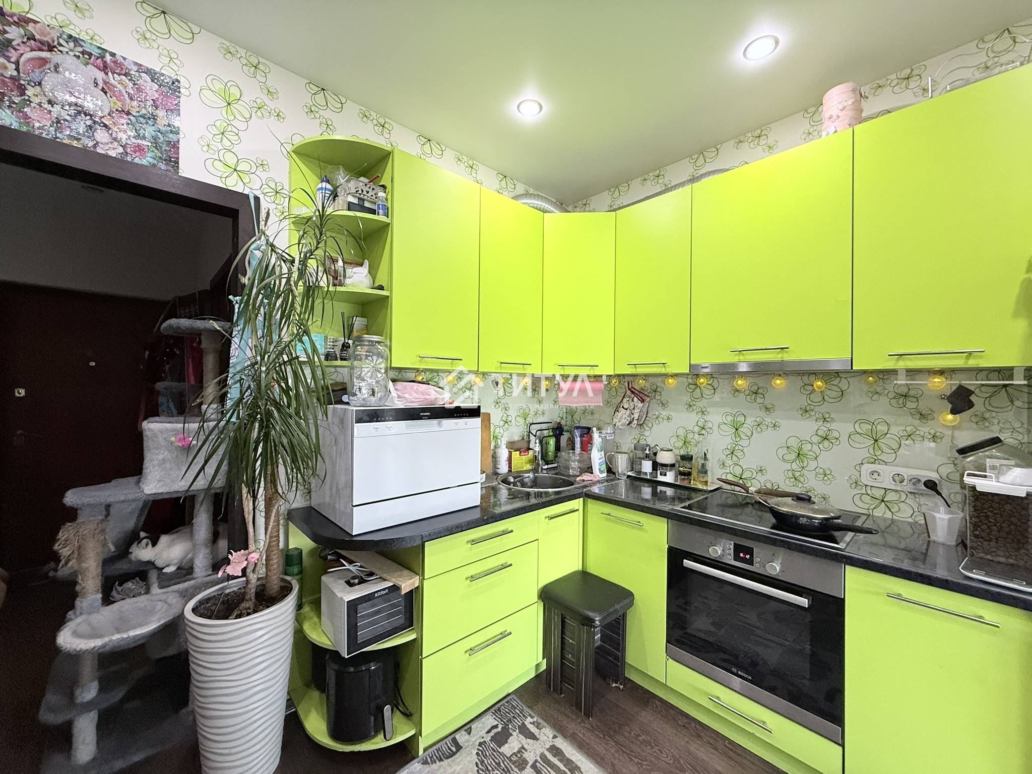 При продаже в квартире остается мебель и техника: кухонный гарнитур со встроенной варочной панелью и духовым шкафом Bosh, холодильник Bosh, кухонная вытяжка Steel Krona, микроволновка, обеденный стол с кухонным диваном, встроенный шкаф-купе, диван, телевизор, обувница, стиральная машина Bosh. Новым собственникам не требуется делать никаких вложений.