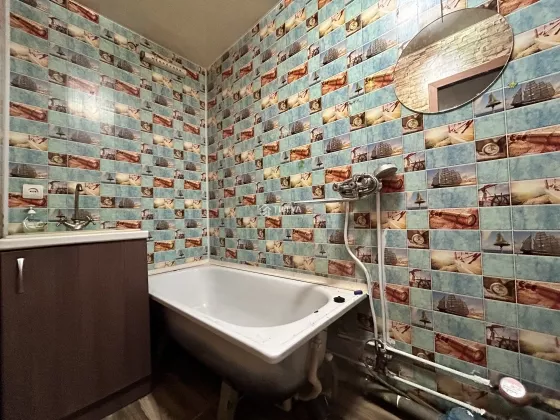 В квартире большая прихожая, в которой расположена кухонная зона. С/узел совмещенный, просторный.